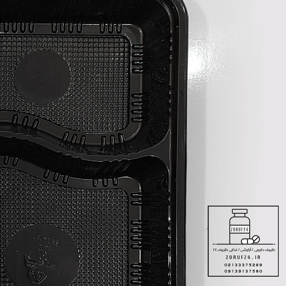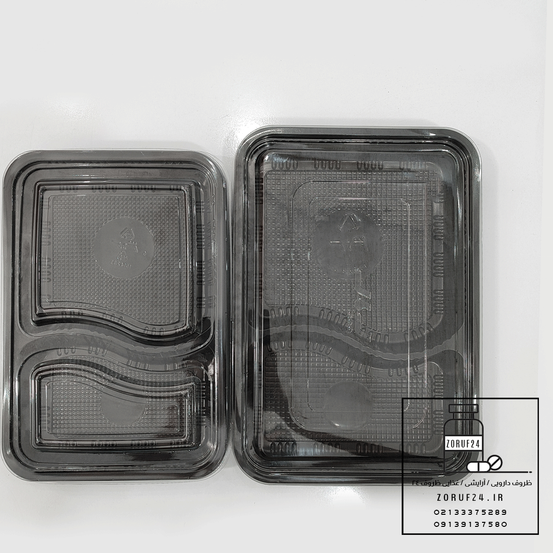 ظرف یکبار مصرف سلفی دو خانه مشکی / حداقل تعداد سفارش این محصول ۱۰ عدد می باشد .