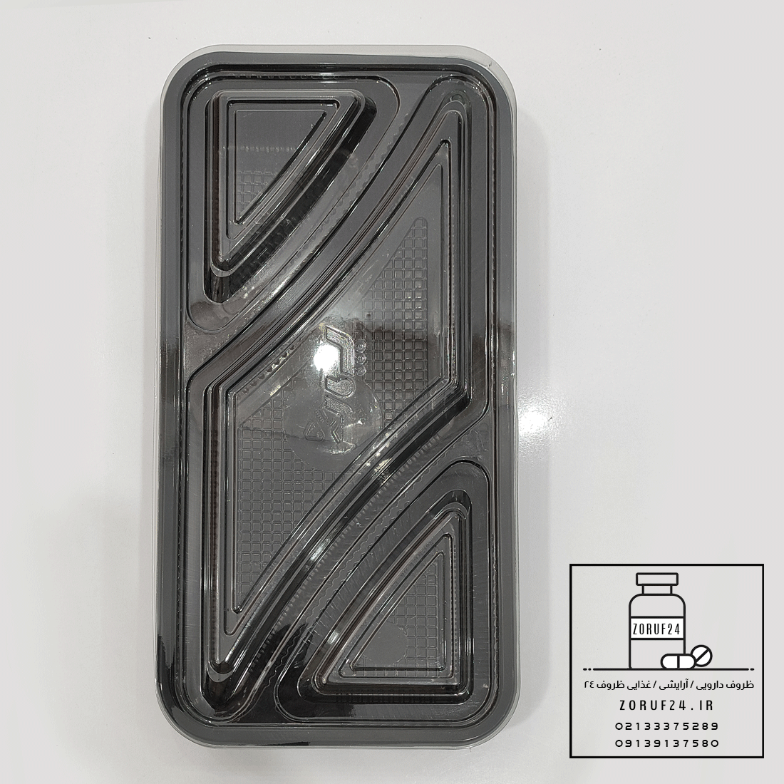 ظرف یکبار مصرف سلفی سه خانه لوزی مشکی با قابلیت استفاده در مایکروویو / حداقل تعداد سفارش این محصول ۱۰۰ عدد می باشد .