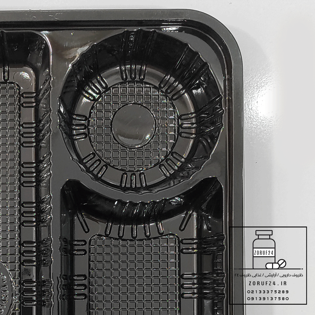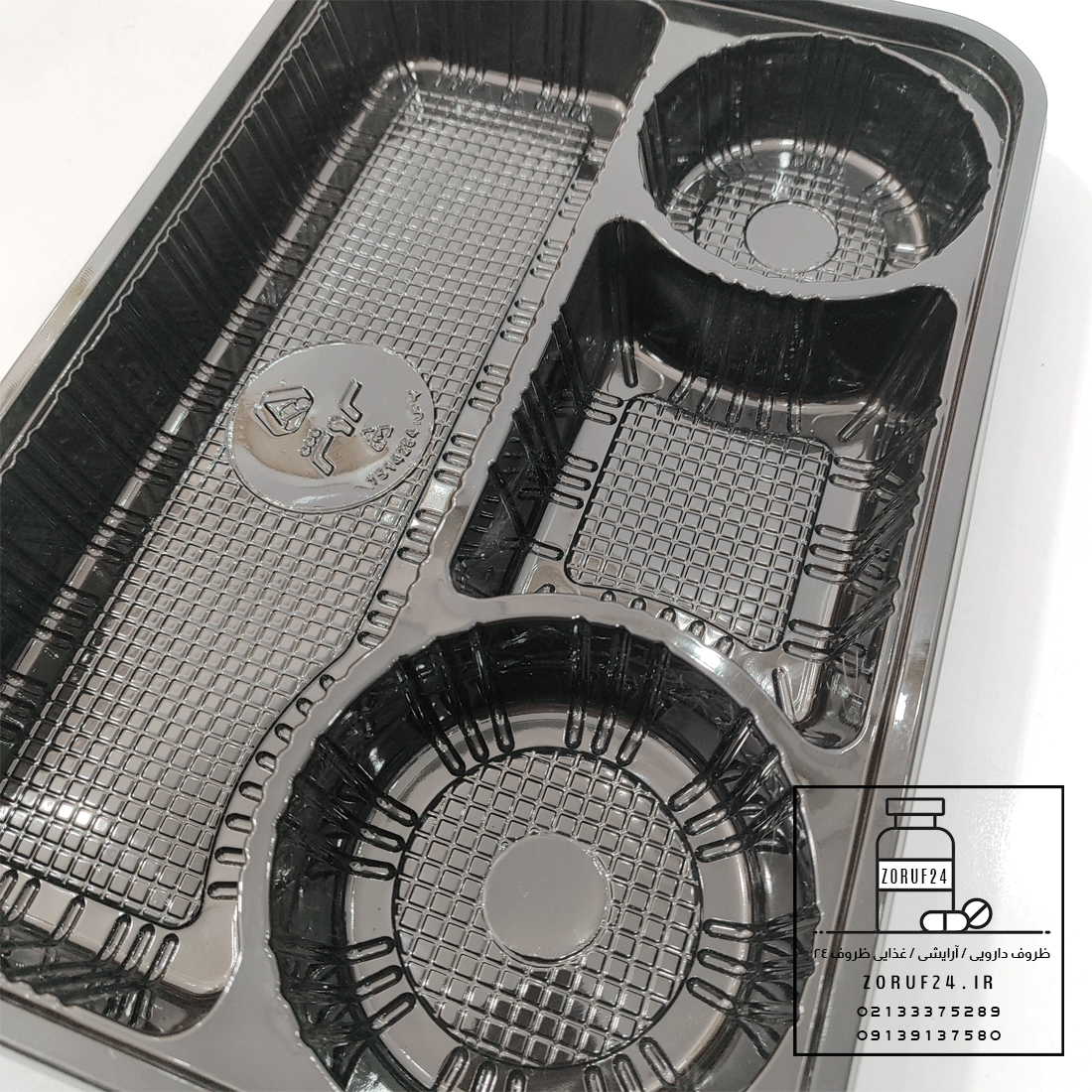 ظرف یکبار مصرف سلفی چهار خانه خورشتی مایکروویوی مشکی / حداقل تعداد سفارش این محصول ۱۰ عدد می باشد .